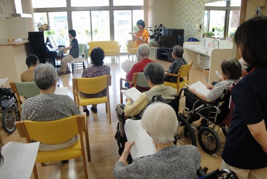 地元の方がピアノを演奏しに来てくださり、皆で楽しい時間を過ごしています。