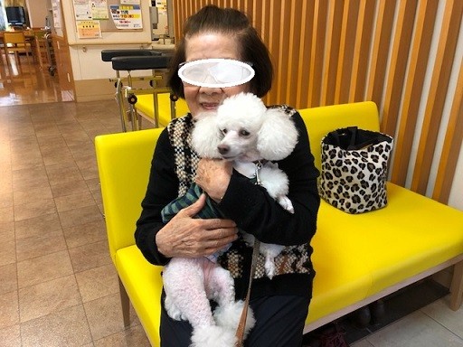 本日、目の手術を終えられたS様。 思いがけないお客様がお見舞いに来られました~ いつもお散歩の途中に出会う”ラウル”ちゃん 飼い主の方がこちらを探し当てて、わざわざ会いに来てくださったそうで 思いがけないご対面にとても感動されたようです デイサービスから帰られたT様もワンちゃんの存在にびっくり 嬉しそうに頭をなでなでされていましたよ 動物が取り持つ縁というのでしょうか?(男女ではないのですが…)私たちもその光景にとても癒されました~
