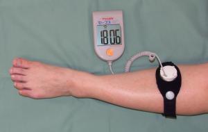 一般の骨折治療と違うのはこの後で、皮膚の上から骨折した箇所に、超音波を照射します。