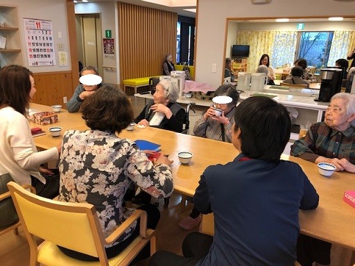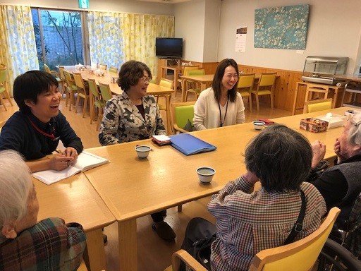 今日は傾聴ボランティアの方にお越しいただき 入居者様といろいろなお話をしていただきました。 ご家族との思い出やご自分の過去のお話、感動したこと、 辛かったことなどボランティアの方に聞いていただけて とても満足されたようです。 今回初めての試みでしたが、時間が過ぎるのを忘れるくらいおしゃべりに 夢中になられていたようです