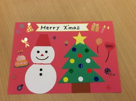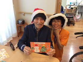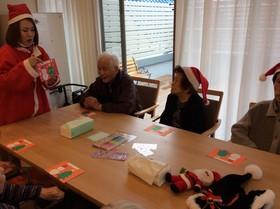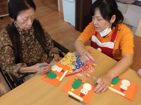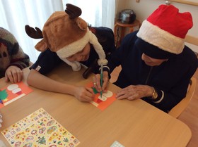 クリスマスカードはご入居者様とスタッフさんとの協同作業です
