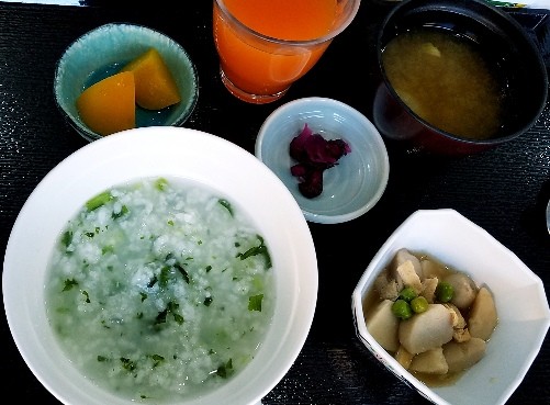 今朝のお食事は、七草粥、胃を休めるには、最適ですね!!