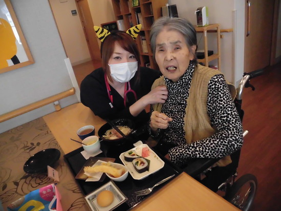 2月3日は節分。今日のお食事は節分にちなんだ巻き寿司御膳です。
