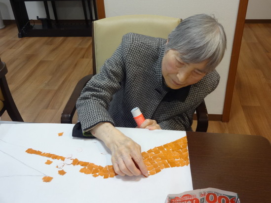 1~2月の創作レクリエーションでは壁画を作成して頂きました。