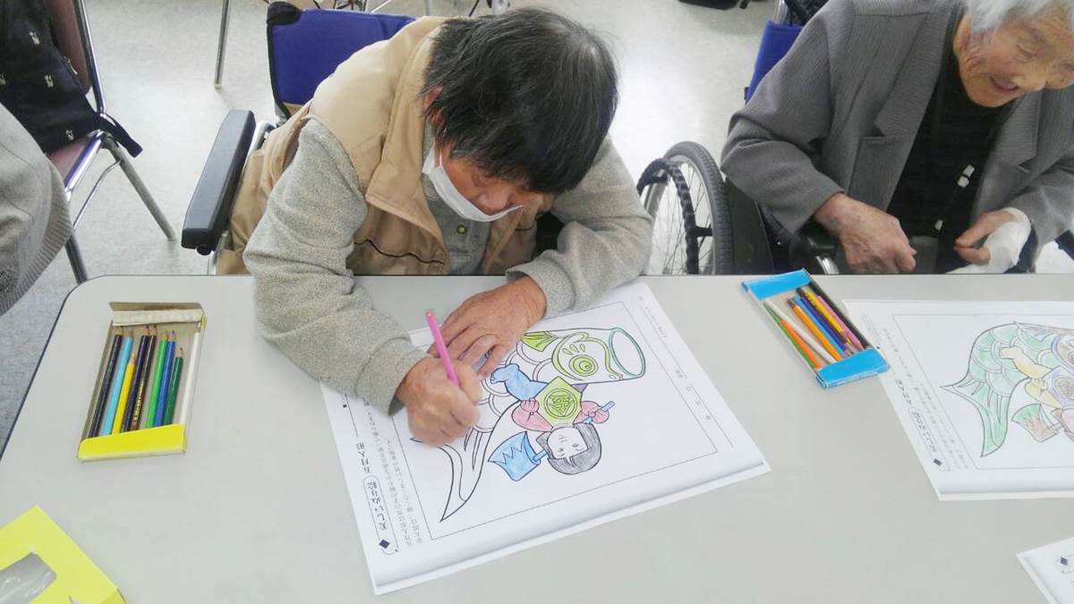 ふじた医院のデイサービスでも認知症予防のため塗り絵や折り紙を行っています。