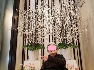 この場所に見覚えがある方も多いのではないでしょうか。場所は三越。綺麗に展示された桜の鉢のディスプレイ。たまたまお買い物に行ったところ、春らしい光景にH様も喜んでくださりました。