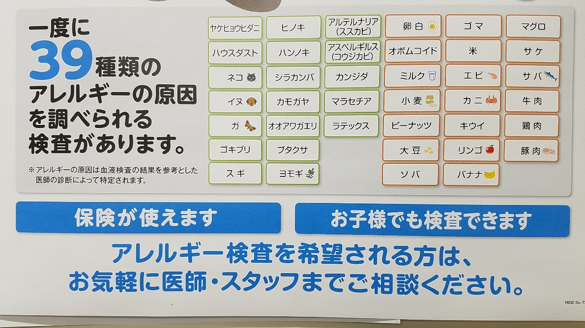 みつ内科では39種類のアレルゲンの測定ができます。