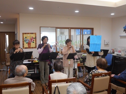 今日は午後より、オカリナのボランティアの方が来て下さいました。