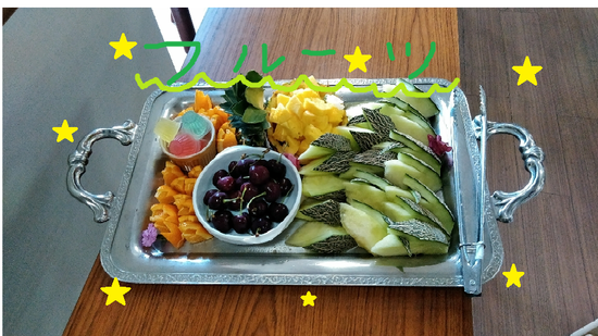 沢山のフルーツやいろんな種類のケーキがあり、皆様にっこりされていました