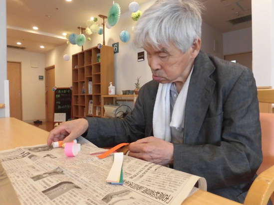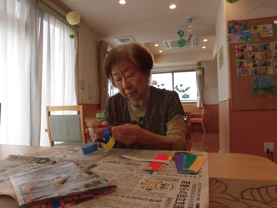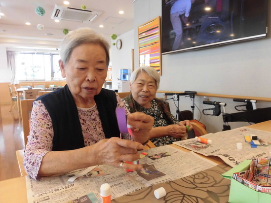 当日、満天の天の川を見れることを祈りつつみんなで、七夕の飾りつけを作りました。