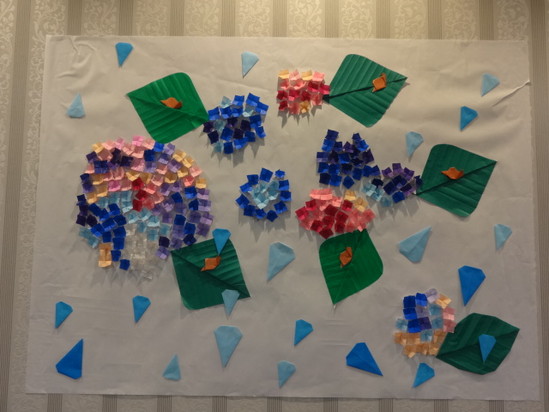 紫陽花の花は折り紙で作成して下さりました。