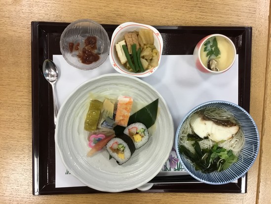 本日のメニューはお寿司と茶わん蒸しとそうめんでした。 楽しみにされていた方も多く、みなさん たくさん召し上がられていましたよ