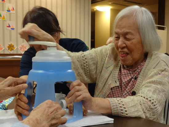 「ほれっ」と奥様にそうめんを取ってあげられている優しい御主人。