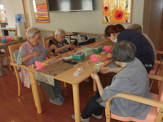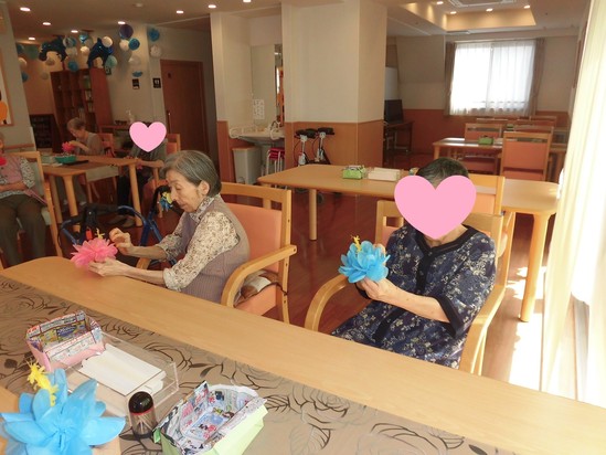 今日はお花紙で、ハイビスカスのお花作りをしました。