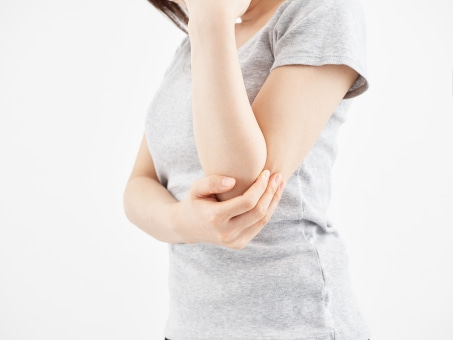 上腕内上顆炎の可能性があります。安静にするだけではなく、痛み止めやリハビリなど様々な治療方法があります。