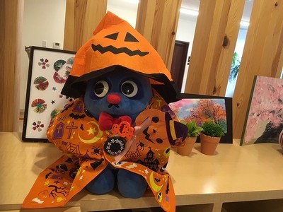 10月に入りましたので、あなぶきのマスコットのあーなちゃんが衣替えしました。10月なので、ハロウィンの仮装をしました。