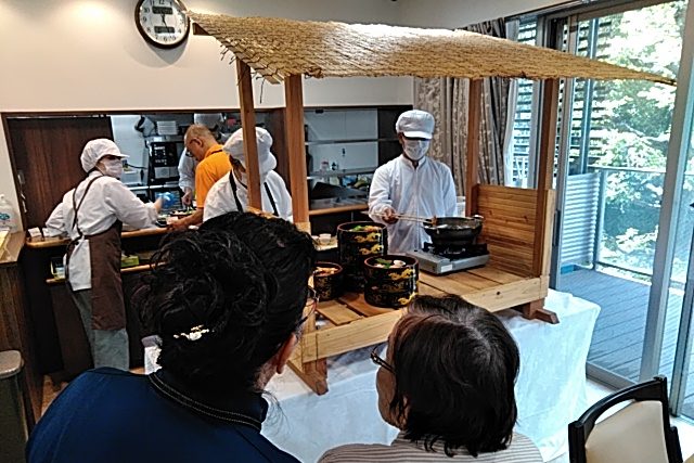 料理の実演を見ながら、いつもと違う雰囲気で食事を楽しむことができ、皆さまとても嬉しそうなご様子でした。