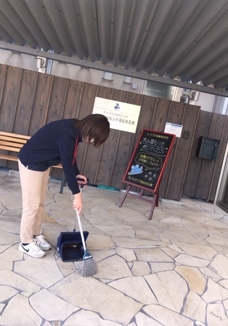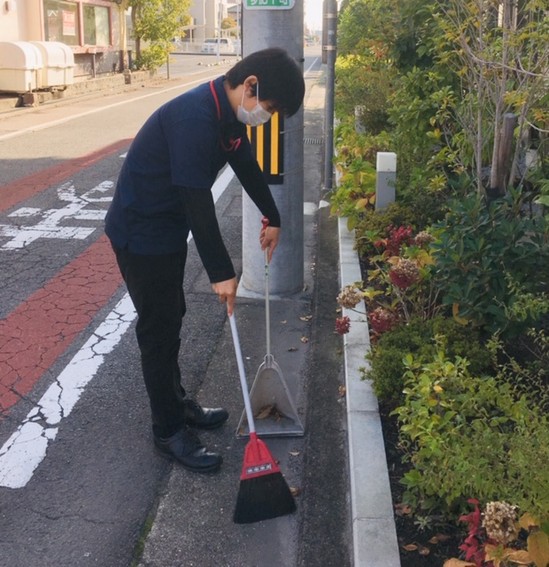 あなぶき伏石南では、毎朝、周辺清掃をしています。