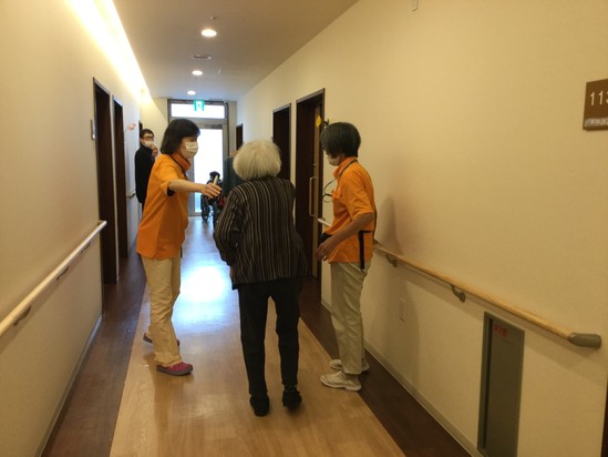 いつもだと、木曜の午後と言えば、とくし丸の移動販売がくるということで、高松伏石南の玄関前では、入居者様が待ち望んでいます。しかし、今日は、避難訓練ですので、居室で入居者の皆様、待機です。