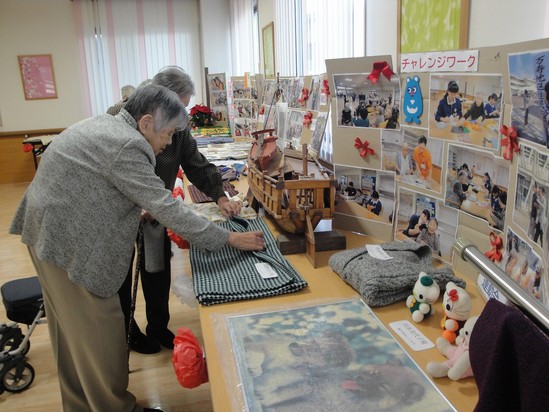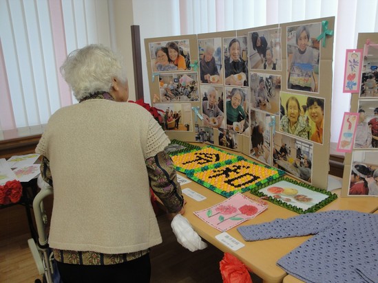 入居者様が作られた編み物や絵などの作品を募集すると、沢山の作品が