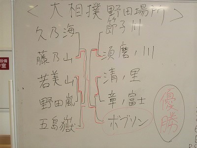 ボブソン(国籍は日本)の優勝! おめでとうございます。 次回の野田場所をお楽しみに! 担当:デイサービスで一番力がない?沖本