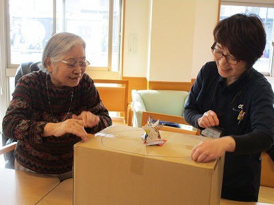 大相撲九州場所で賑わっている今日この頃。 アルファデイサービスセンター野田では、 大相撲野田場所を開催いたしました! と言っても、皆さんに相撲を取って頂くわけにはいかず、 折り紙を使って、トントン相撲をしました。 皆さん、真剣に折っておられます。 それぞれ「しこ名」を考えて、準備OK! 見合って、見合って・・・ はっけよい、のこった!!! 結果は・・・