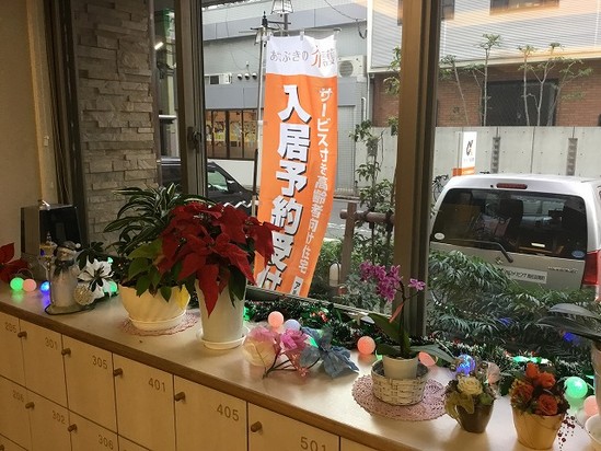 aリビング高松百間町もクリスマスムードで玄関内を飾っております。