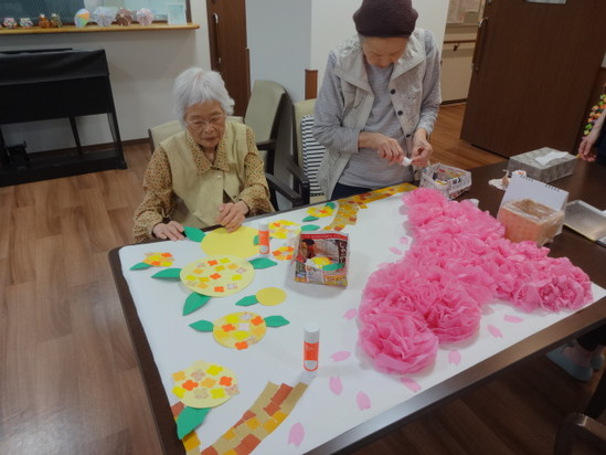 桜と菜の花の壁面の完成