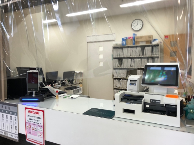 当院では感染症対策の一環として、 受付に非接触自動検温装置を導入しました。 来院時の検温にご協力お願いいたします。 また、つり銭等による接触を軽減する目的も合わせて、 自動精算機も導入しております。 これにより、診療後の会計もスムーズになる見込みです。 操作など不明な点は受付スタッフにお気軽にご相談下さい。