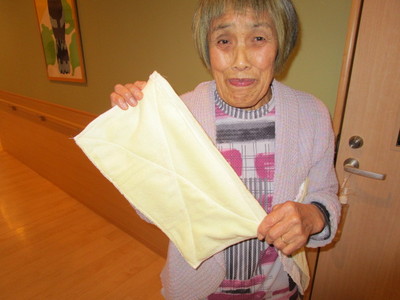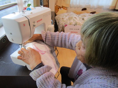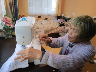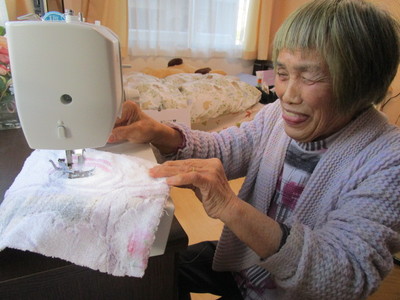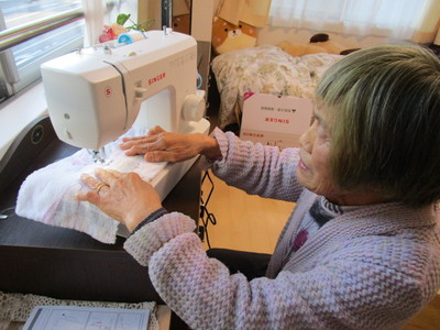 入居者様のもとにご家族様のご厚意でミシンとタオルが届きました。