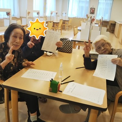 能トレプリントをお渡しすると3人で和気あいあいと取り組まれています