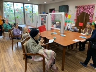 スタッフの掛け声で「赤上げて♪」「白上げて♪」と真剣に取り組まれていました