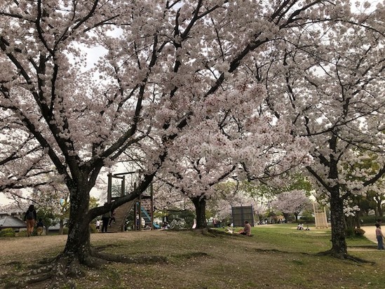 同じく歩いて数分の大元公園でも満開の桜の下で子どもたちが賑やかに