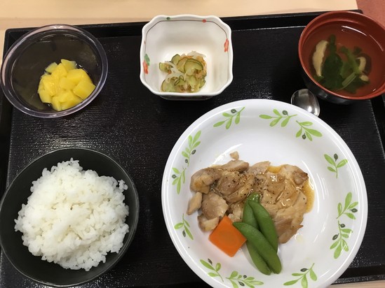 ちなみに普通食です。(鶏の照り焼き、酢の物)