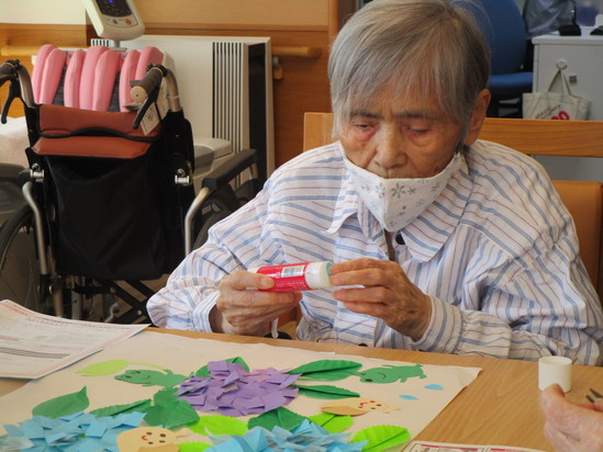 梅雨の中休みで、暑い日が続いていますが、 いかがお過ごしですか? アルファデイサービスセンター野田では、 「暑いなぁ…。」と言う職員たちと、 「ちょうどええよ。」と言われる利用者様との体感温度の違いを感じながら、 換気をしたり、エアコンで調整したりと、 皆様の体調管理に努めながら、 毎日楽しくやっております。 6月の壁面もコツコツと作業して下さり、 素敵な作品が出来上がりました! 梅雨が明けると一段と暑くなりますが、 梅雨明けが待ち遠しいですね。