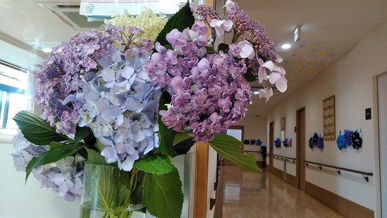 紫陽花を見た、入居者の方が「とってもキレイ」と花瓶に活けてくれました