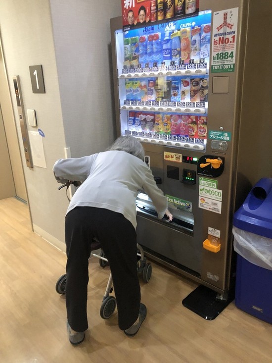 毎食後に自動販売機で、お好きなジュースを購入される 方です。