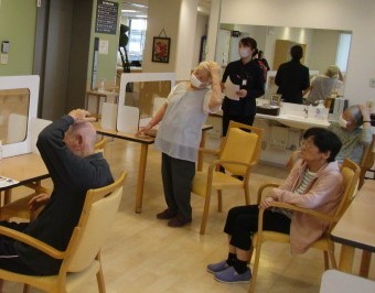 入居者様と一緒にリズム体操と口腔体操を行いました\(^o^)/
