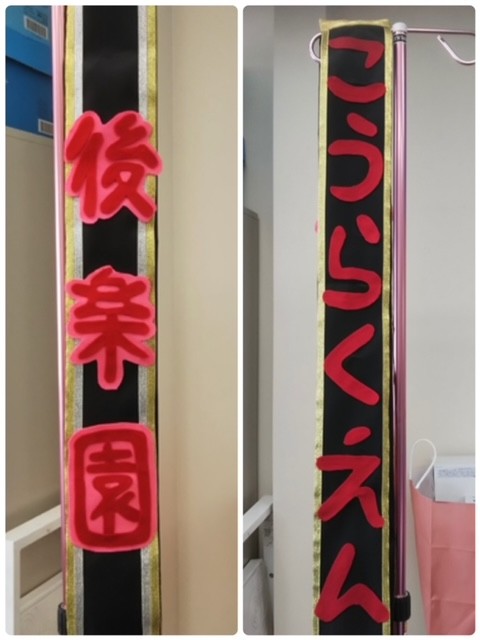 後楽園デイサービスを知って頂きたく、手作りのたすきをつけて(*'ω'*)