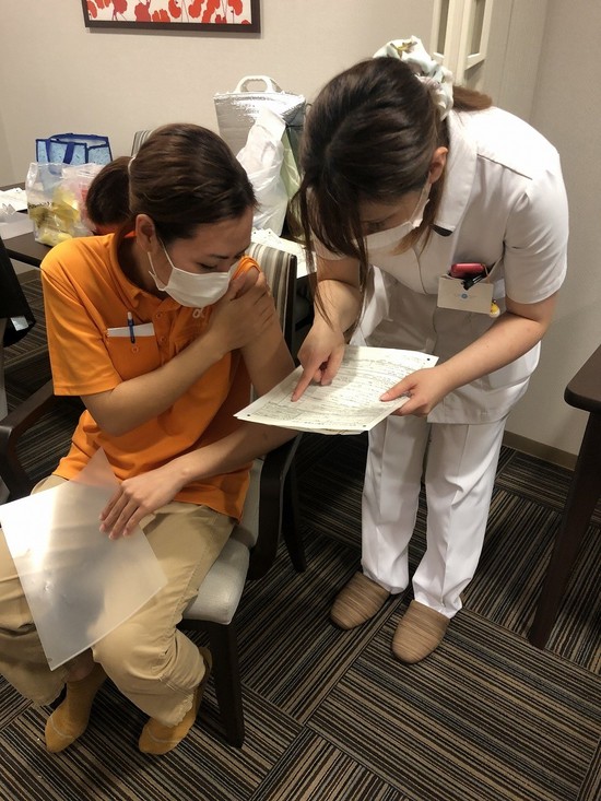 無事に接種が終わって「ホっ」と一安心の職員さんたちです