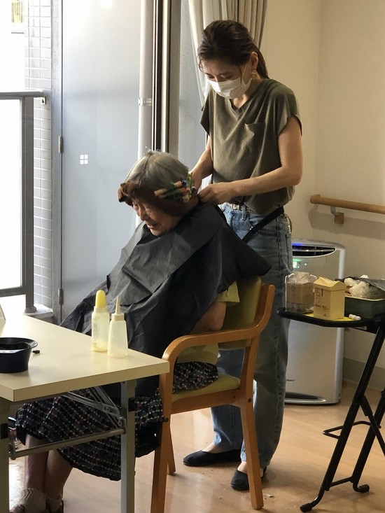 コロナ禍で外に出かける事がなかなか難しい現状ですので、施設に美容師さんに