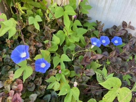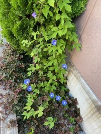 施設玄関横にきれいに咲いている朝顔です