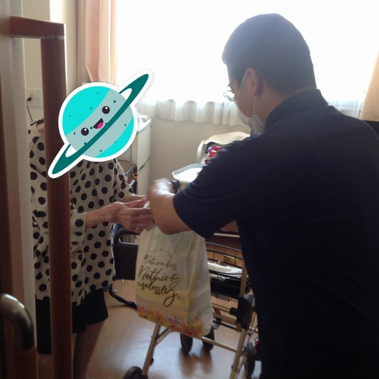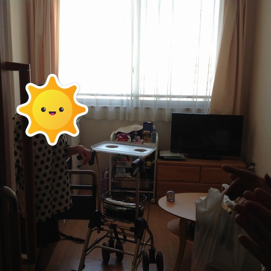 居室に訪問。声かけすると、びっくりされた様子で嬉しそうにされていました