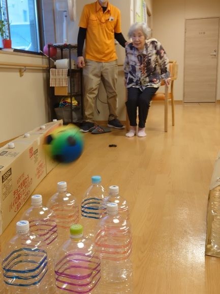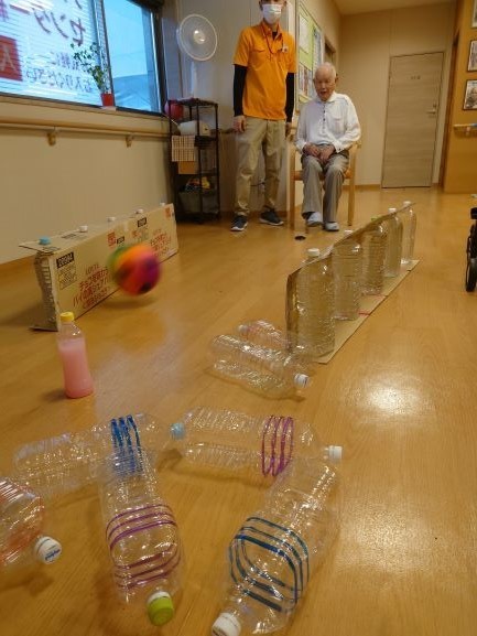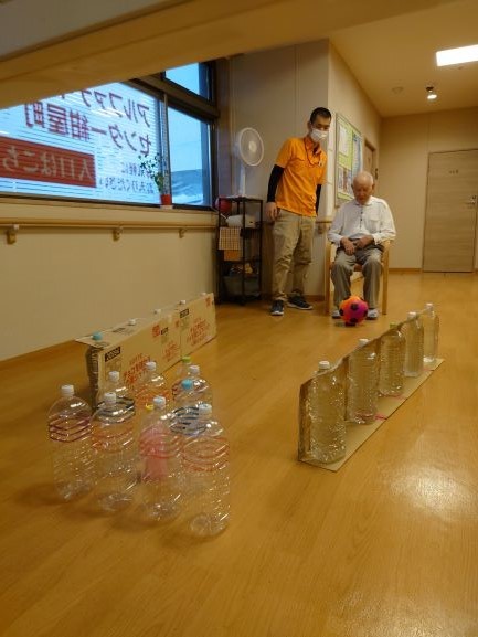 今週のレクリエーションは、サッカーボウリングと言うとても珍しくそうでもないゲームをしております