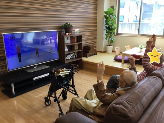 談話室にて、ちょうどテレビ体操が放送されていました。