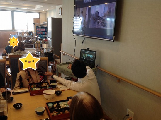 レストランのTVをオンラインリモートで二蝶さんとつないで、二蝶のお食事をお召し上がりいただきながら、二蝶の女将さんとの会話もあるという「本格的