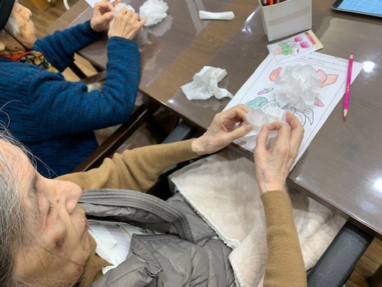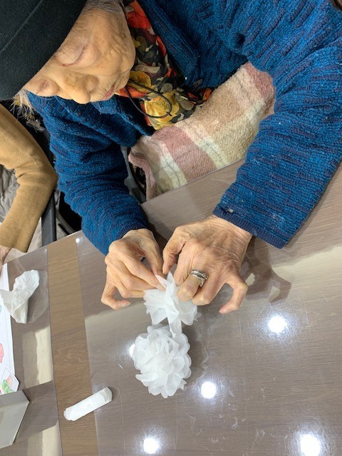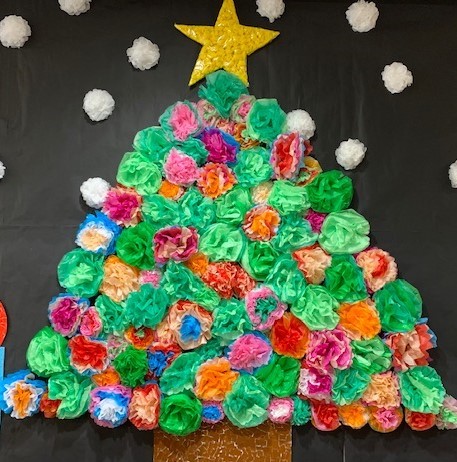 クリスマスをイメージし、お花紙でツリーを作成しました(*'ω'*)