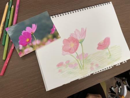 「絵を書いてみる?」と声を掛けると、「何を見て書こうかな・・・」
