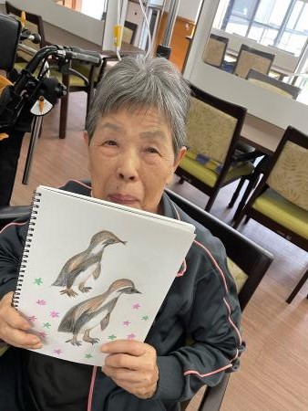 「下手くそだし、恥ずかしいから見ないで~~」と言いつつ、立派なペンギンが2羽書かれていました。