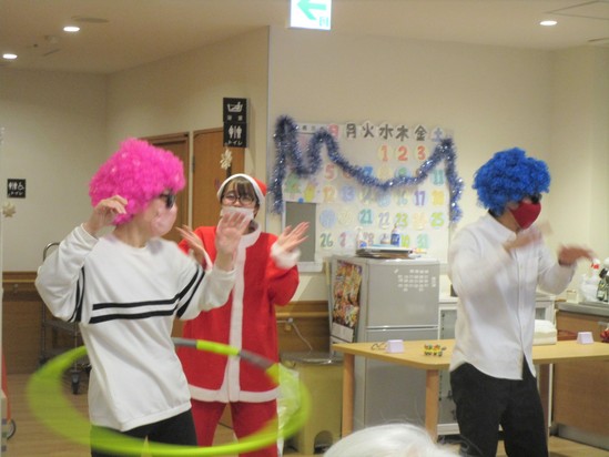 フラフープ対決をしたり、